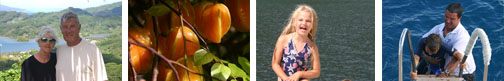 Or check out some more pics at Flickr. Week 16/17: Tahiti and Society Islands 30-June-08 :: After retrieving the grandparents from the airport, we spent an uneventful weekend in the Taina Marina outside Papeete, in Tahiti. The crew needed time to reprovision the boat and get some laundry done for all of us, plus empty the rubbish! We kept busy by playing Scrabble while on board, and ventured onto land a couple of times. We visited the town where Daniel found a pair of sandals to replace the ones he lost on the dive boat in Rangiroa. We also had a look at the market, where we bought a couple of gifts. Lunch in town was not exactly memorable, and it was an easy decision to head back to the boat for the rest of Saturday afternoon. Sunday we had a taxi pick us up for a ride along the west coast of the island. Fifi, the taxi driver, had become a friend over the short duration of our two stays in Tahiti, and she took pride in showing us around. In fact, we noticed that many of the taxi drivers were ladies, and they all took pride in their appearance a pleasant change from other places! Fifi took us to see a botanical gardens and a small park with a waterfall, both of which were a nice distraction from the marina. Sunday evening we had a pleasant dinner at one of the restaurants in the marina La Casa Bianca. We had hoped to move on to Moorea on Monday, but had to postpone for one day while the meat we purchased was frozen sufficiently and delivered. So Monday we took the kids back to the Intercontinental Hotel for the day to play in the pools and have lunch our last day on land for awhile! Tuesday we headed off as scheduled, and the trip to Moorea was a short one (only a couple of hours). We anchored in Cooks Bay and went for a snorkel off the back of the boat and at a few other places just inside the reef. After that, we moved further into the protected bay for the night, and the next day we got out the toys both kayaks, the laser and the bic! The wind was a bit inconsistent, so the sailing wasn't very satisfying, but the water was perfect for the kayaks! Later that afternoon we moved around to Opunohu Bay, stopping off at a beach for awhile before settling in for the night. We had a very peaceful night, with dramatic mountains protecting us from the wind, and very little in the way of settlement on that part of the island. Although we barely managed to get onto land, we had a great impression of Moorea! Early Thursday morning we lifted the anchor and headed north to Huahine, a sail of about 10 hours. We watched the dramatic, mountainous silhouette of Moorea gradually disappear as the sun came out and the moon set. We reached Huahine late in the afternoon and found a spot to anchor in Cook Bay, near the town of Fare on Huahine Nui. The boys went ashore and found some fresh milk at the grocery store, so they were happy. After that Daniel convinced the kids to kayak ashore nearby and try some snorkeling all I could see was a goat munching on the beach nearby! That evening we got everyone to bed early sailing always seems to make us all tired! The next morning Daniel took the boys off for a dive along the reef. They were very impressed with the local divemaster, who removed numerous crown-of-thorns starfish from the reef in an effort to protect it. The rest of us went into town, which consisted of a grocery store and a couple of trinket shops not the most charming side of the island. After they returned, we moved to Bourayne Bay just south of the previous anchorage. So far this has been our favorite spot we immediately got on the kayaks and headed toward the south entrance to the bay! The snorkeling there was a bit disappointing, so we decided to brave an approaching squall in order to see if the snorkeling would be better near the motu (small island) in the middle of the bay entrance. After being pelted with rain, we were rewarded with some of the best coral and variety of fish we'd seen yet! Once the squall passed, we were also treated to a rainbow. The following morning we set of rather early, in search of the "City of Coral", which required us to take the inflatable through the channel separating Huahine Nui from Huahine Iti. After about 45 minutes of bouncing around in the small boat, we reached an area that looked promising. We could see that there was coral, but we also noticed that the current was rather strong. Everyone was a bit nervous about being washed into some coral and getting cut, so that was a short snorkel, but we saw lots of sea anemones with clownfish, just like in Finding Nemo! After that we noticed a resort that had been mentioned in the guidebook, only to discover that it was abandoned! We swam on to shore to have a look around, but some local people had taken over a few of the bungalows on the hotel property and were not too happy to have us there. Until they found us, it was a very strange experience to wander around an abandoned resort like that. So we returned to the boat, rather disappointed in our outing. In looking at the guidebook, it turns out that we hadn't gone far enough "City of Coral" was on the other side of the resort, between the reef and the shore! But we were happy to go back to the motu near our anchorage later that afternoon. In fact, snorkeling a bit later in the day meant that the fish were much more active, and we spotted a couple of octopi! Sunday morning we lifted anchor and had a leisurely sail to Ra'iatea, just north of Huahine. We entered through Te Avamo'a Pass, arriving in time for lunch, and anchored in Faatemu Bay, but our post-lunch snorkel plans were interrupted by a very large black cloud overhead. We have become accustomed to short squalls, and were happy to wait it out. But this one turned out to be more of a weather system than a squall. A few hours later, a small patch of blue sky emerged, and we took advantage of it by heading for the nearest snorkeling spot. Motu Nao Nao is unique because it is one of the few places where a sandy b