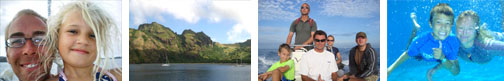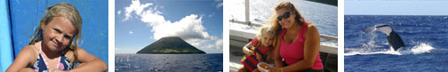 Or check out some more pics at Flickr. Week 20: Tonga 24-July-08 :: We set off from Samoa on a rainy Monday morning, hoping for the weather to improve. As we crept along the north side of Upolu, the protection from the island gave us a false sense that the conditions wouldn't be too bad. However, as soon as we turned south between Upolu and Savai'I, we began to understand what the trip to the south west was really going to be like. The wind from the southeast was blowing up to 30 knots and as we emerged from the protection of the Samoa islands it whipped the rain in every direction, quickly drenching our covered deck and sending us indoors. The rain also forced us to keep the hatches closed, which allowed very little air to move and created a hot, stuffy atmosphere in the cabins. Throughout the day we all began to feel sick, especially after dark. That was definitely our most miserable overnight on board. On the plus side, we made relatively good time in the strong wind. By morning, not only had the skies cleared and the sea calmed somewhat, but we realized we were much closer to Vava'u, in Tonga, than anticipated. That day of sailing was much nicer and everyone started to feel better. Instead of the 2-night journey we had anticipated, we arrived in the Vava'u that evening at about 9pm the entry was navigable in the dark and we spent that night in a peaceful anchorage. We woke up on a sunny Thursday morning (having lost a day due to crossing the International Date Line) and waited for the immigration officials to clear us so we could go ashore. Our job was to organize some activities while there, and at the top of our list was seeing humpback whales! Sailing Safaris, which departed from the Yacht Club, seemed to be the best option. Gabrielle, the guide, informed us that it was still early in the season so their first expedition was scheduled for Sunday and there was no guarantee of seeing any whales. We spoke to Jason and Lisa at the Aquarium Café and they arranged for a small boat to take us on a tour of the nearby islands on Friday, which was very interesting. It's finally possible to say that we found numerous beaches that compare with Bermuda! The kids really enjoyed playing in the sand and swimming in some calm water. With the bad weather we experienced in Samoa, swimming hadn't been on the agenda for awhile! Saturday I went with the boys on a single tank dive. The divemaster, Paul, was originally from North Carolina and had worked on many live-aboard diving boats in various parts of the world before choosing Vava'u in Tonga. Although we didn't see any spectacular creatures, the coral was beautiful and we saw some interesting species of fish that were new to us. That afternoon we wandered around Neiafu a bit it's a very friendly place with lots of yachting people hanging around at coffee shops and bars. After that we had a quiet Saturday evening on the boat. Finally we woke up on Sunday morning for our long-awaited whale watching expedition! We grabbed the pack lunch Davide made for us and headed off to the Yacht Club to join our group. I kept warning the kids not to have high expectations, since we'd been warned it was early in the season. Still, we all found it difficult to control our enthusiasm. We set off at about 9:30am with our guides, Gabrielle (she takes videos of the whales), Nofo (she has 14 years of experience taking visitors out to find the whales) and our boat driver, Peter. One member of our group was Robbie, and medical student from Ireland who was doing a summer placement at the local hospital. We then stopped off at another yacht to pick up a family from New Zealand with three children. It took us nearly an hour to get to the southern part of the archipelago, where the whales are most likely to be spotted. We were all engaged in conversation when Nofo spotted the first humpback, at about 11am. We were all so excited! At first all we could see was a cloud of spray rising off the water and blowing away, but then the whale's back appeared above the water briefly. In fact, there were two of them! As the boat moved slowly closer, we were able to see much more of their bodies and sometimes their tails as they dove under. That was just the beginning of an amazing day we ended up seeing about 10 whales, and at least 7 up close, all between 11am and 2pm. Finally the chance came to get in the water with them. We had to go in groups of 4, so everyone had to wait for their turn. As for me, I let out an involuntary scream into my snorkel when we got up close they are so huge! And I'm told that the 2 whales we snorkeled with were juveniles of 2 to 3 years, so not even fully grown! During the hour-long boat journey to return to Neiafu, all of us discussed the amazing experience we had just shared. Fortunately, since we saw so many whales we were happy to move on the next day. The kids had been threatening not to leave Tonga until we saw the whales! Our original itinerary had included a stop in the Hapai'i group of islands, south of Vava'u, as well as a visit to Tongatapu, which is where the king lives, in the city of Nuku'alofa. However, as we near the end of our time on the boat we are more aware of time constraints and decided to skip the rest of Tonga and carry on to Fiji. After much discussion, it was decided that we would sail toward Hapai'i anyway and watch for more whales along the way. That enabled us to spend Monday night anchored quietly off shore and head off to Fiji the following day. That ended up being a great idea, since we saw 2 humpbacks as we sailed out of Vava'u, and 3 others as we left Hapai'i for Fiji! We also sailed directly between 2 volcanoes, located about 30 miles west of Hapai'i Kao is a perfectly shaped but dormant volcano, and just south of it is Tofua, which is still active with smoke pouring out of its lake-filled crater. See them both up close was pretty exciting! Now we are en route to Savusavu, on Vanua Levu in Fiji. Because the islands are so s