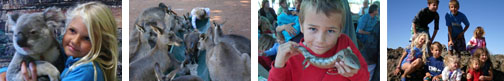 Or check out some more pics at Flickr. Week 23/24: Yeppoon 25-Aug-08 :: After reaching Brisbane, catching our connecting flight to Rockhampton proved impossible. Faced with the choice of spending the night in a hotel and returning the next morning, we opted instead to grab a rental car and drive 700 kilometers. By the time we reached the motorway, it was nearly 5pm, so we had an hour or so of daylight left. We had our first McDonalds in months at Gympie, then drove on until we reached Gin Gin just before 9pm (but 11pm in Fiji time). We managed to get a family room in a motel for a good price, and were all asleep within minutes of turning out the lights. Of course, Wed morning by 5am everyone was stirring, so we decided to hit the road before dawn. The morning mist only added to the beauty of the Queensland scenery as the sun came up. After a quick stop at the Colliseum roadhouse for a cooked breakfast and a stop in Bororen to fill up with petrol, we cruised the rest of the way to Yeppoon. We met the Crofts at the Yeppoon Golf Club and followed them to the Great Keppel Yacht Club and Marina. There we met some of Sue's friends, had a coffee and let the kids get reacquainted. By the time we reached the house, it was time for a late lunch. After that we had our first experience at the local beach, which was lovely. The water was a bit cool, but the kids entertained themselves by digging in the sand, while the parents had a toast with some bubbles. During our week and a half stay with the Crofts we did an awful lot. For us, it was just nice to see the kids all enjoying each others' company so much, especially after 5 months with only each other as companions. With the huge shaded verandahs, their house is the perfect place for the kids to keep busy outdoors. The boys played tennis and rode scooters, while the little girls pretended to be dogs and such in their make believe games. The older girls joined in both activities! The kids also enjoyed watching the Olympics together, as well as old episodes of "Gilligan's Island". The time passed very quickly with visits to the beach, a trip to the family pineapple farm, a stop at the Saturday morning farmers' market, not to mention shopping and cooking for the core 12 people, plus whatever friends and family members decided to stop by! The boys also fit in 2 outings to the golf course, which they shared with a lot of kangaroos. And the girls managed a short horse ride, as well as a chance to help feed and care for some horses. And we all enjoyed our visit to Cooberry Park, where the kids had a chance to hold a snake, pat a koala, cuddle a joey, and feed numerous kangaroos and wallabies. We left Yeppoon on a Sunday, headed back toward Brisbane. The drive back felt a little easier, maybe because it was familiar. We reached Coolum, on the Sunshine Coast, at about 7pm, and checked into the Hyatt. What a fantastic place! I was really wishing that we had more time to spend there, with the great golf course, tennis courts and bicycles for hire. Plus we had a 2 bedroom apartment with a small kitchen for a good price! Monday morning Daniel dropped us off at Australia Zoo and continued on to Brisbane, where he liberated our luggage from customs at the airport and moved it to a long-term storage facility--a full day's work. Meanwhile the kids and I had a great day, although it was overcast and a bit cool (our first cloudy day in Australia!). The older kids each had their photo done with a native Australian animal, and they even got the chance to feed some bananas to an elephant! The show in the Crocoseum was amazing, seeing how high and how quickly a motivated crocodile could jump! There was even a small playground and a couple of "rides" for the kids. All in all it was a great day. That evening we returned to the Hyatt, as we'd been unable to find any space in Brisbane. So in the morning we had to get up early and hit the road by 6:30am, in order to make our flight to Darwin. Fortunately, Quantas has easy computerized check-in kiosks, and security for domestic flights is more low-key than the international security, so we had plenty of time to find some food in Brisbane airport. And our flight ended up being delayed by about 45 minutes, so we explored the small domestic terminal quite thoroughly! Click on any picture below to launch a gallery of pics from Yeppoon.
