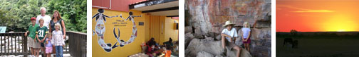 Or check out some more pics at Flickr. Week 25/26: Northern Australia to New Zealand 06-Sept-08 :: After an uneventful flight from Brisbane to Darwin, in the Northern Territories, we were initially pleased to arrive in hotter weather. A taxi took us from the main air terminal to the general aviation section of the airport, where a small plane was waiting to take us to Bullo River Station. Kevin from Air Frontier loaded us up in the 8-seater and started to taxi to the runway. It didn't take long before we were roasting, and I noticed that the windows had no curtains or shades. In a relatively big airport like Darwin, we had to wait a good 15 minutes for our take-off slot in that heat it felt more like an hour! And once we were airborne it began to cool off, but the passengers on the side with the sun shining in remained hot. Fortunately the flight was only a bit over an hour, and we were relieved to disembark. We received a warm welcome from the staff at Bullo River Station Ruth made certain that our luggage reached our rooms and offered us a welcome cup of tea. The girls were immediately in love with the dogs in residence, one of whom was just 6 months old and had very puppy-like behavior! Daniel took the older kids off fishing almost immediately with Greg, one of the resident experts, while I stayed behind and dipped my feet in the pool. Dinner was a social occasion, where we met fellow guests Andrew and David from Sydney. That evening the temperature dropped quite a bit after sunset, so after the kids went to bed we enjoyed drinking wine around the fire pit outside and looking up at the stars. I heard someone mention that the Argyle diamond mine was located nearby and expressed a keen interest in visiting. Daniel and Andrew discovered some acquaintances in common, as Andrew had retired from Goldman Sachs a few years ago. And we listened to some of Greg's stories about the station. A very pleasant evening, all in all, and we were still in bed by 10pm! Tuesday morning we went off to spot crocodiles and fish along the river the boat wouldn't move very quickly with all of us in it so we split into 2 groups. I counted about 11 crocodiles on our turn! Mostly they were saltwater crocs, but we also saw a few freshwater ones at the furthest point up the river. Fishing from the causeway was fun, but we didn't catch anything. After lunch the boys went off fishing at a different spot for the afternoon and Daniel caught an impressively large Barramundi! Meanwhile, Ruth had heard of my interest in the diamond mine and made some enquiries. In the end she booked me and the boys on an all day trip Thursday, which was our last full day at the station. So after breakfast the next day we set off in the station plane (a 6-seater Cessna Centurion 210) with Malcolm, the station pilot. He dropped us off at the airfield in Kununurra, which is across the border in West Australia, and we picked up another plane with Slingair. Henry, our guide and pilot, loaded us up in a 10-seater with really comfortable seats (not to mention window shades!) and off we went. First we landed at Argyle, where we ate lunch in the workers' cafeteria. Then we continued in our bus up to a lookout point which gave us a great view of the mine from above. We could see all the diggers and dumpers carrying ore out of the bottom of the mine. It was quite impressive. Then we continued down to the processing plant, where we were able to watch the ore move from one building to another and Henry explained what sorting process was happening in each building. Visitors are not allowed inside the buildings for security reasons. Finally, we had a look in the display room, which is home to the largest diamond ever found in the mine. Apparently it was stuck in the tread of a truck's tire and discovered in the repair bay! The next segment of the tour involved going back up in the plane to fly over the Bungle Bungles, which can best be described as beehive shaped mounds of rock with visible stripes of different types of rock. They were very impressive from the air, and quite high. We then flew over Lake Argyle and some other cattle stations before returning to Kununurra airport, where Malcolm was waiting to return us to Bullo. What a busy day! The boys asked lots of interesting questions and learned a lot about the process of mining diamonds. But we were all ready for an early night. Friday morning we drove to the gorge on the Bullo River station property, took a boat ride with Trevor, another resident expert, and got out for a walk when the boat could go no further. The kids loved climbing on the rocks on either side of the river, which is more like a creek upriver at this time of year. Unfortunately, our plane was scheduled to arrive at 1pm, so we had to cut that outing short and return to the lodge. We packed up in a hurry but were still a bit late taking off for Kakadu National Park. This time our pilot was Nathan and the plane had curtains to protect us from the sun's heat! So the flight was much more pleasant. Our guide for Kakadu, Hamish, was waiting for us at the airstrip and dropped us off for a quick but cooling swim at a local hotel's pool before we boarded a large boat for the Yellow River Cruise. The wildlife in the wetlands is just amazing, with countless birds plus the expected crocodiles. The cruise ended just before sunset and we were then whisked off to our campsite for the evening. When we arrived our tents were already assembled and then Hamish cooked some steaks for us over the fire. We all enjoyed our meal and fell into a deep sleep! Saturday morning we were up at dawn. After a simple breakfast and a shower in the shed, which was a 200m walk, Hamish took us on a long drive to Arnhem Land, an area dedicated to Aboriginals and preserving their traditional lifestyle. Although it is usually closed to the public, this was an open day (somewhat like a small fair) and people were out in big numbers. We arrived near the opening and watched