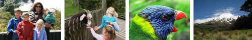 Or check out some more pics at Flickr. Week 34/35: More North Island 01-Nov-08 :: We continued our stay at the Koura Lodge in Rotorua for another 2 nights. Sunday we visited a nature park called Rainbow Springs, where the main attraction is trout. The fish were imported from California many years ago, but they thrive in the abundant fresh water here and attract fisherman from all over. This was another very well-maintained park where we were pleased to see that the admission fees really are spent on the facilities. The main attraction for us was the Kiwi Encounter, where we spent an hour touring the Kiwi rescue facility. Because Kiwis cannot fly and have poor eyesight, they are vulnerable to introduced predators such as ferrets and stoats. So the Rainbow Springs staff endeavor to collect the Kiwi eggs when they are close to hatching and keep the birds until they are about 6 months old and more able to defend themselves. We were shown the rooms in which the eggs are incubated, another where the chicks are kept warm and a third where they are fed and nurtured until they are ready to be released into the wild. Finally, we were taken to a dark room which imitates a Kiwi habitat and allowed to watch 3 Kiwis behavior! It was so exciting, as the chances of us seeing them in the wild is pretty small. We were also pleased to learn that when the chicks are released back into the wild, the carers put them in the same place where their nest was located. After that the kids felt like a round of mini golf with Dad and we returned to the lodge for some relaxation. Felix discovered that his camera was missing and when we retraced our steps he decided that he'd left it in the lobby of the Westin. So I phoned immediately and Felix was relieved to learn that it had been safely tucked into the manager's desk (along with his Breckenridge jumper, which he hadn't realized was missing). I then spent some time on the phone with DHL to arrange for the camera to be picked up and shipped to meet us at the hotel in Wellington. I was keen to try out the kayaks, as we finally had a sunny day without too much wind. The boys started out in the single kayaks, but while they waited for me and their sister to get out in the double kayak, they managed to have a splashing fight and became too wet and cold to continue. So I switched to one of the individual kayaks and went off on my own, while the others stayed behind and threw baseballs in the yard. It was pretty cold out on the water and not very nice to be wet, but I persevered for about 30 minutes before returning to the shore. Then we all jumped into the hot tub and relaxed for a bit until dinner! We returned to the local Tandoori Palace that evening for another tasty curry meal, which made everyone happy. Tuesday we packed up the car and headed out to another wildlife park called Paradise Valley. The attractions were very similar there, with abundant trout as well as farm animals. The main difference was that they also keep lions! The girls were very excited to observe the lion enclosure for awhile and could have stayed there all morning. Again, it was obvious that the entrance fees were used to keep the park maintained and we were very impressed. After a couple of hours walking around and photographing local flora and fauna, everyone was hungry. So we grabbed a quick lunch and hit the road. The drive took us southwest to beautiful Lake Taupo and then around it on the southeast side. From there we entered the mountains, but the fog became so thick that we could barely see them! It was like Mount Cook all over again. After leaving Turangi, there were very few towns until we reached our hotel, the Bayview Chateau Tongariro. By this time it had started to rain, so we were pleased to get settled into our rooms and the kids spent a bit of time on school. There was just enough time for a quick swim and sauna before dinner the pool was quite unique in that it had a very low ceiling and was filled with hot water. We dined in the chateau's nice restaurant that evening, and the kids all behaved very well. Wednesday morning the weather hadn't improved much, so the kids attended to some more school work in the morning, and we decided to head out close to lunch time. We drove up to the nearby ski area, which was surprisingly much bigger than the areas we had experienced around Queenstown. There was even accommodation right next to the lifts! Although the lifts were no longer running, a group of people were there with rubber rings sliding on the snow, so the café was serving food. The kids all chose pies for their lunch, and after a brief walk around we returned to the hotel. Since the rain had stopped, the boys were keen to have a try on the resident 9-hole golf course. I went back to the room and didn't see them all for several hours! Their timing was impeccable, since shortly after they came indoors, the rain returned. However, we dodged the drops and ran across the road to the local pub for dinner. There was a pub quiz going on, so we did our best to stay out of the way by taking over a pool table in the corner while waiting for our fish and chips. Thursday we set off late in the morning for New Plymouth. There was a slight disagreement with regard to the map-reading amongst the family, so we decided to stop at the nearest i-site for some advice on which route to take. Turns out that I was reading the map correctly and the route Daniel wanted to take had quite a few kilometers of dirt road. The kind woman at the i-site recommended that we avoid the unpaved roads on such a wet day, and instead directed us on a route which appears slightly longer on the map but has paved road the whole way. Once we reached the coast (our first glimpse of the west coast of New Zealand, other than the Milford Sound way down south), the drive was very picturesque. We checked into the Waterfront Hotel at about 2pm, after the excitement of passing all the big supermarkets along the main drag. I gave Me