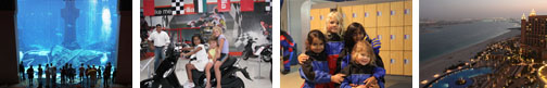 Or check out some more pics at Flickr. Week 53: Dubai Visit 10-Mar-09 :: Landing in Dubai before dawn was rather disappointing, as we'd all been thinking about the stunning buildings, and the sun had still not come out when we reached our hotel at about 6:30am! The Park Hyatt was mercifully close to the airport and the hotel had miraculously arranged for both our rooms to be ready upon arrival, which was very impressive. But that was just the beginning of a fantastic week's stay at the hotel we could not say enough good things about the rooms, the staff and the setting. More on that later ... After settling into our 2-bedroom suite (which was beautifully decorated and on the ground floor, with a grassy area outside leading to the creek!) I got straight to work on the visas for India. We'd received some conflicting information about the time-frame to obtain the visa, so I figured it was better to get started on the application immediately. I was hoping that I could go to the consulate on my own, but when I rang I was told that all family members need to appear in person because we are not residents of the UAE. Fine, so against the moans and protests I rounded everyone up and we headed off to the Indian Consulate. We reached there at 10am and the closing time for submitting an application is 11am, so Daniel and I got busy finding out what was required. Fortunately, we already had our photos and we had printed out photo-copies of our passports at the hotel before coming, so I thought we were set. However, they were short on copies of the application form, so when I asked for 6 copies I was told to take one copy and proceed to the copy/photo room and pay for my own! Had I anticipated this wrinkle, I could have printed off everything at the hotel, but oh well ... Finally Daniel and I had finished filling in all the applications and had been given a number to wait for our turn to submit them. I then discovered that cash was the only acceptable form of payment, but of course we hadn't had time to obtain any dirhams yet! I had to leave the consulate and receive special permission to return after getting some cash. Anyway, I sent Daniel back with the kids and returned to pay by the time I returned from the consulate it was after 1:30pm, but I had been assured that our visas would be ready for collection in just 4 days, which was better than I'd expected. Shortly after that, my parents arrived at the hotel and we had a happy reunion with lots of hugs! Carole and Pete had left Chicago the previous week and spent about 5 nights in London to break up the trip, and had arrived in Dubai the previous day. After spending 1 night with my cousin Gautam and his family, they checked in to the Park Hyatt as well, and we had neighbouring rooms. Once we'd spent an hour or so chatting and catching up, I started to call the local relatives. Between my cousins, they decided that we would all meet at Sachin and Shalu's house for a casual evening. I was afraid the kids wouldn't last but, although they were tired, they managed to stay awake long enough to get there and be introduced to everyone. I also discovered that my cousin Vishal had a son last year the cutest 10-month-old boy! By the time we returned to the hotel we all fell into bed exhausted! The next day I felt relieved because I didn't have to think about the visa issue anymore. In the meantime, Daniel had been working very hard to confirm our itinerary for India, booking flights and hotels, airport transfers and tours, always making sure that the rates were reasonable. So he was relieved that we weren't going to have to cancel everything! That day we wandered over to the nearby mall, City Centre, which I immediately recognized as the place I'd been to with Miranda on my previous visit to Dubai. As we were getting ready to leave, we noticed how busy it had become this was Thursday, which is like Friday most places, and apparently we were there during the busiest time. If we had any doubts of that, the line for catching a taxi convinced us I think we waited for a half an hour! Although our hotel was only a few minutes drive away, we had to cross a very busy highway which made it impossible for us to walk. That evening we left the kids back at the hotel with my mom to catch up on their sleep, and Daniel and I took Dad out to meet everyone at the Irish Village. There was quite a happening social scene there, and my cousins kept running into various people they know. When Gautam arrived, that's when the horrible blue-colored shots started to appear. Amazingly, we all lasted until 1:30am! Friday we relaxed at the hotel during the day and made use of the swimming pool. That evening we were all invited to Gautam's house to celebrate his and Aneela's 10th wedding anniversary, so we got everyone ready to go and caught a couple of taxis. Unfortunately, our taxi driver had no idea where he was going and even struggled once I put him on the phone with Gautam for directions in the end it took over 1 hour to get there, even though their house is only a 10-minute drive from the hotel, and all the while Daniel and the kids were waiting at a nearby meeting point and wondering what had happened to us. In spite of the less-than-ideal beginning to the evening, it ended up being a fun one. We finally got to see my cousin Anant and his family, who live the furthest away. Another lovely evening of reminiscing, and we reached the hotel with 4 very tired kids at about 1:30am! Saturday, Sachin picked us up from the hotel just after noon and took us out to the new part of Dubai to see one of their new businesses a motorbike shop! The boys were in heaven and even the girls enjoyed a ride on the back of a bike. We met the rest of the family there and continued on to see the new houses where Sachin and Vishal will be moving shortly. The building is nearly finished and we snuck around and had a look at the various rooms it's very spacious and will be a fantastic home once they've got the