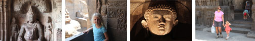 Or check out some more pics at Flickr. Week 54: Aurangabad, Ajanta and Ellora Caves 17-Mar-09 :: Having been warned that the drive to the domestic airport, formerly known as Santa Cruz, could take up to 2 hours, the hotel arranged for 2 cars to pick us up by 3pm. The Four Seasons had agreed that we could drop off some of our luggage to keep there until we return on Friday, so a stop there had to fit into our drive. Once that was done, the drive turned out to be surprisingly quick, and we ended up at the airport more than 2 hours before our flight's departure! The airport looks brand new and was not the least bit crowded, so checking in at the Jet Airways counter and getting through security was very pleasant there is a dedicated queue for ladies, which was unexpected but quite nice. After filling up on snacks at the coffee shop, we boarded a bus out to the tarmac and our plane, which reminded us of the propeller planes we take from Philadelphia or Newark up to Burlington! After an uneventful 1-hour flight on a very new plane, we reached Aurangabad and walked to the terminal to collect our luggage. Just as we found a couple of luggage trolleys and Daniel headed off to the restroom, the power suddenly went out! As it was nearly 8pm, this plunged us into complete darkness for a few seconds, until the back-up generator kicked in and turned on a few lights. Of course, then the luggage carousel was not running so everyone crowded around the entrance window to get their bags. Getting to the hotel was no problem and the kids were relieved to discover that it was only a 10-minute drive. Our rooms are very comfortable and overlook a lovely swimming pool. We had some hungry people among us, so we headed directly to the restaurant for some dinner. I tried the tomato soup and a glass of Indian wine, which comes from the nearby Nasik Valley. The chardonnay was quite nice, and a fraction of the price of imported equivalents! But since our tour guide had informed us we should set off early in the morning, the goal was to eat quickly and get everyone into bed as soon as possible. Getting up early was still painful, however, and breakfast was a sleepy affair. As planned, Thomas met us at 7:30am, when the temperature was very pleasant. Our destination was the Ajanta Caves, located 110 kilometers from the city, or about a 2-hour drive. The road quality was very nice, but we were frequently stuck behind slow trucks and farm equipment, which is what makes the travel time longer. Still, we reached the parking area for the caves at around 9:30am and boarded a bus to the entrance. Nothing looked familiar from my previous visit in 1976 until we actually walked up the hill and around the corner to the sight of all the caves in a long line along the rock face. Thomas showed us the most important of the 30+ caves and told us the relevant parts of the story of Buddha's life depicted in the paintings, which are still intact. Everyone found the visit fascinating, and there are many photographs to demonstrate our interest! By noon the sun was getting quite hot and we were very glad to have set out early. We left the caves by 12:30pm and headed to a nearby road-side shop for a shady picnic with the boxed lunches that the hotel had sent with us and were back in Aurangabad at our hotel by 3:30pm, glad to have time to relax and try out the swimming pool. With another early morning planned, we tried to get the kids in bed relatively early, with mixed success. I was pleased to see the kids take an interest in Indian food for breakfast, even if they were only eating the bread! The Ellora Caves are closer to the city and the Daulatabad Fort is on the way, so we stopped there first. The fort was much more impressive than I remember from visiting when I was 11 years old. There was a fair amount of walking up hills and stairs and the kids did really well. They were also excited to spot a few more wild monkeys and squirrels. At one point the fort plunges into total darkness and we had to follow a guide with a special torch we were able to see how difficult it would be for any potential invaders to successfully attack the fort. As we proceeded further into the fort, the walls also afforded some great views of the surrounding countryside. From there we continued to the Ellora Caves, which was another 20-minutes or so away, and along the way we passed a water park which appeared to be out in the middle of nowhere! The first difference we noticed upon arrival was how much busier it was perhaps being closer to Aurangabad made the difference. Here we saw examples of Buddist, Hindu and Jain work, including the famous Kailash Temple which depicts the Hindu folktales of the Mahabarata and the Ramayana on the exterior walls. Again, the morning passed quickly as we listened to Thomas tell us about the caves and the monks who carved them. By 1pm we were again ready to head back to the hotel for lunch and a swim. The girls and I braved a visit to the swimming pool, but she quickly had enough and wanted to return to the room. At 4pm we met Thomas again for a tour around the city. First stop was the mini Taj Mahal, which I don't really remember from my previous visit. It is constructed mainly of plaster, with a bit of marble, but made to look like a replica of the original. Hearing it referred to as "mini" gives the impression that it's quite small, but in reality it is quite large (just smaller than the original). We then visited a weaving center, where silk threads are woven into the most beautiful saris (there is a special name for the type that come from this region, but I can't remember it). They were also weaving shawls, table covers, bedspreads and other items, so we purchased a couple of small pieces. After another delicious meal, we once again made the effort to get everyone in bed at a decent time. Friday morning was an early departure, so we had to promise the kids a late morning on Saturday! Click here for our itinerary for while we a