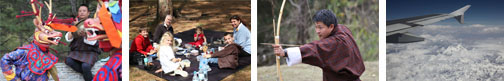 Or check out some more pics at Flickr. Week 58: Shimla 14-Apr-09 :: Flying over the Himalayas was amazing! We were expecting to land in Kathmandu to let off some passengers, but instead our plane flew directly to Delhi, where the airport was rather chaotic. But the drive to the Taj Hotel was only about 30 minutes drive, and we quickly settled into our rooms. I managed a visit to the gymnasium, which was a pleasant surprise. The trainer there kindly offered me some headphones to watch TV while I used the elliptical trainer, and kept offering cold bottles of water as well as cold cloths to dab my neck! It was a great way to work out. That evening, we treated ourselves to some sushi at the famous Wasabi restaurant, which was amazing. In the morning we left some luggage behind for the week and travelled lighter than usual up to the mountains of Shimla. Landing on the mountain top airstrip was a bit disconcerting, especially as it was not a smooth landing, but we quickly forgot about that as we took in the gorgeous scenery. Although the views were not as dramatic as in Bhutan, the area was quite full of character and charm. Our hotel, the Oberoi Cecil, was located just a short walk from the pedestrianized area of the town, where people strolled from shop to shop, and we managed to entice the kids to head out with us for a couple of hours. After surviving an attack from the surprisingly aggressive red-faced monkeys, they were pleased to discover a shop which sold all sorts of familiar sweets which they had not seen in awhile, so Daniel purchased some chocolates and gummy bears for them. We also managed to find some more rechargeable batteries one of many things that can excite us! The boys and I managed to sit down and put together an order from Amazon in the UK, with items for the Wood visitors to bring with them. Benjamin had a series of books that he wanted; Daniel had a recommendation from a recent issue of The Economisti magazine that he hoped to read; I had the third book from my trilogy that I wanted to read; and Felix was desperate to buy a flight simulator CD-ROM. Daniel also discovered that he could get the Samsung laptop that he wanted delivered to Simon and Debbie, so he ordered that and we all looked forward to receiving our new items at the end of the week! In the hotel the kids discovered a wonderful activity center, where they were keen to spend their time. So we quickly settled into a routine where they worked on school after breakfast for several hours, and then were allowed to join a few other kids in the activity center. While they were being supervised, Daniel and I headed out to explore the town a bit more and attempt some short walks. On one occasion I was returning to the hotel with some grapes, as requested, and was accosted by monkeys! They obviously recognized the packaging and came running at me to try and scare me into dropping the bag. For some reason, my first thought was that a dog was approaching me, so I didn't really react appropriately, and managed to make it back with most of the grapes I had purchased. There was also a lovely indoor swimming pool and gymnasium at the hotel, so we spent a fair amount of time in those places. Since the kids were being productive with their school work and happy to keep things low key, we didn't see any reason to upset the equilibrium and the week passed relatively quickly that way. We all began to get very excited about the visit from Simon, Debbie and the boys at the end of the week, and were happy to conserve our energy, knowing that the schedule once they arrived would become much more hectic! Finally Friday morning arrived and we packed up to head back to the airport. Our final breakfast at the hotel was very nice, and everyone was ready to leave on time. The drive to the airport was uneventful and our flight departed on time, which meant that we arrived in Delhi shortly after lunch and returned to the Taj Mahal Hotel by early afternoon. I had plenty of time for another pampered workout, as well as a hair color and blow dry! After a family meal at the hotel's Chinese restaurant, the House of Ming, everyone got ready for bed and Daniel headed off to the airport. He finally returned with the Wood family at about 1am, by which time I was exhausted from waiting up for them! Everyone was happy to head directly to bed after that and rest up for the busy Saturday ahead. Click here for our itinerary for while we are in India. And stay tuned for updates on our adventures! Click on any picture below to launch a gallery of pics from Bhutan.