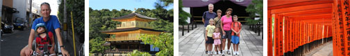 Or check out some more pics at Flickr. Week 82/83: Kyoto 12-Oct-09 :: Catching the train from Kagaonsen to Kyoto could not have been easier, partially because the journey was short with no transfers, but also because we are JR pros now. The weather remained gorgeous again as we pulled into Kyoto Station, and we joined the queue for taxis to reach the Hyatt Regency. Saturday marked the beginning of the long Japanese holiday, so we were lucky to get some very expensive rooms at the Hyatt. Having read on their web-site that the rooms are a mere 28 square meters, our expectations were pretty low. But upon seeing them we were pleasantly surprised! The rooms were very stylish and laid out such that they didn't feel cramped at all. What an impressive feat! After unpacking, we set out on a mission to rebuild our Weatabix stash in order to continue our satisfying breakfasts. I'd found the address of the local Meidi-ya branch, which we managed to find on a map and reach by navigating the local subway. After a successful shop, we decided to stroll along the river back to the hotel it was a very pleasant walk along with many other cyclists and pedestrians, enjoying the lovely weekend weather. Daniel noticed that quite a few restaurants had decks jutting off the back and overlooking the river, so we made a note to try and eat at one. Near the hotel we picked up some takeaway sushi for Saturday's dinner, then turned in early in anticipation of a busy Sunday of sight-seeing! Sunday morning we headed off to a bicycle rental shop next to Kyoto Station luckily we had reserved our bicycles in advance, because the place was very crowded. It was another glorious day, sunny and warm, as we all mounted our bicycles and set off north. Our first stop, after about 25-minutes, was Nijo Castle, which is one of Kyoto's top ranked sights. Not surprisingly, the place was packed. We paid $10 to park all the bikes, then another $20 for the entry fee, and off we went. By the time we finished looking around the grounds and viewing the many lovely buildings, we certainly didn't feel as though we'd overpaid. Everything was just gorgeous! After recovering our bikes from the parking area, we set off north again in search of the Kinkakuji, or the Golden Temple. Just as we were all running out of energy, we came across a McDonalds. After some chocolate milk shakes and fries, everyone was feeling a bit more energetic and we discovered that we were nearly there. If the Nijo Castle seemed busy, it paled in comparison with the Golden Temple, Kyoto's number 2 attraction (after the Imperial Palace). After entering we followed the crowd along the appointed route. Although the crowd marginally detracted from the enjoyment of the place, it was well worth the visit. That ended up being the biggest crowd we saw in Japan anywhere (with the possible exception of Kyoto Station), so I think we still did pretty well. From there we cycled down the road to the Ryoanji Temple, which is known for its specially formed Zen garden. Unfortunately the temple was undergoing some renovations, which slightly detracted from the peace of the garden. But with the sun shining and the sky blue, there were still many photograph opportunities in the gardens! After that we began the long journey back to return the bicycles, meandering through what I assume are some of Kyoto's nicer residential areas, sticking to the smaller back streets and retaining our single file system. We caused a bit of a stir among some of the local residents a line of foreigners on bicycles! By the time we returned to the bicycle rental shop we must have clocked up about nearly 20 km! But everyone had a great time, and the kids all begged to cycle again the next day. After grabbing dinner in one of the many restaurants at the station, we returned to the hotel and fell into bed, exhausted. Monday morning we decided to visit another part of the city which is not ideally suited to bicycling, so we caught a train and walked a bit instead. Our first stop was the Heian Shrine, which has amazing gardens the highlight is a long, covered bridge which crosses one of the ponds. Apparently it's quite spectacular in the spring, when the cherry blossoms and wisteria are in bloom, but we enjoyed the garden, even though the only flowers were water lilies. From there we walked south, past a couple of art museums (the line to get into the one which was showing a display from the Louvre was incredible!), and on to some other temples. Since the holiday was celebrating the need to respect old people, the temples were quite busy with worshippers as well as tourists. After a couple of temples, we reached the historic quarter, where many buildings have been restored or maintained because of their historical significance. The area is pedestrianized and is really beautiful. I was amazed by the kids' capacity for appreciating the various temples, shrines, gardens and historical buildings. They really seemed to enjoy themselves! That evening, Daniel and I arranged to have dinner at a Thai restaurant with a deck overlooking the river, and we were really looking forward to it. After resting a bit from our long day of walking, we got ready and headed out, only to discover that it was pouring with rain! So much for our plan to eat outside all the tables had been moved indoors. Still, the food was delicious and the price was quite reasonable, so we had a pleasant meal. From there we walked along the riverside in search of a fun place to have a drink. The area was very lively, and we were impressed by the Kyoto nightlife! Although the rain had stopped temporarily, it never stopped long enough for us to sit outside anywhere and we returned to the hotel after a couple of drinks. Tuesday morning we got up and headed back to the bicycle shop, even though the sky was overcast. Although we embarked on a slightly less ambitious route than Sunday, we still managed to get some good exercise with the hills involved. We started at t