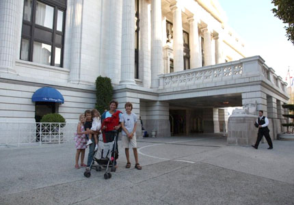 Or check out some more pics at Flickr. Quick Update 25-Oct-09 :: Benjamin unfortunately celebrated his birthday at school! It's been a busy and somewhat scary week of school visits but we feel we have some idea of what life "off" the road might be like here. (Outside the Ritz Carlton ... our home for the week)